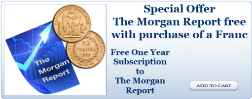 When you purchase the Gold Franc containing a fifth ounce of gold, at an exceptional price from Midas Resources, you will also receive a full one year subscription of the Morgan Report ($129.95 value) FREE!