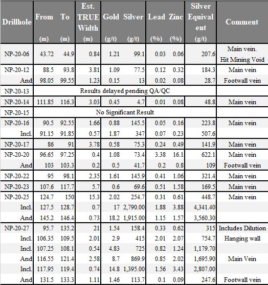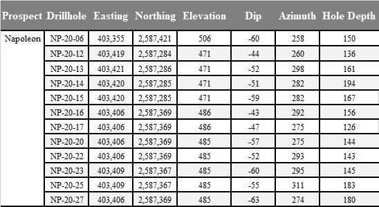 sixteen new holes at the Napoleon prospect at the Panuco